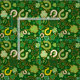 Feiern Sie Tag St. Pattys, indem Sie diese Kleeblatt- und Hufeisengewebe für eine Vielzahl der nähenden Projekte verwenden. Die Ausrüstungsbeschreibungen ein Wiederholungsmuster mit Hufeisen, Klee und Punkten in Grünem, in Orange, in Gelbem und Weiß.