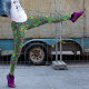 Erleben Sie den St. Patrick's Day mit diesen lustigen Leggings. Sie zeichnen sich durch handbemalte Illustrationen von Kleeblättern, Blume und Regenbögen aus. Die hellen und farbenfrohen Grafiken sind Set vor einem dunklen aquamarinen Hintergrund.