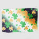 Randomisch verstreute grüne, weiße und orangefarbene Kleeblätter mit einem grün-weiß-orange-schwarzen Farbverlauf. Personalisieren Sie Ihre Daten mit einem Monogramm, einem Namen usw. Kontaktieren Sie den Designer für spezielle Anfragen. © Copyright 2020 P.D., Urlaubsmuster und Gemälde. Alle Rechte vorbehalten.