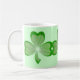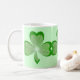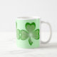 Modernes Design mit drei leuchtenden, leuchtenden, grünen Kleeblättern auf grünem Hintergrund. Tasse mit individualisierbarem Design für Sie, um Ihre eigene Hintergrundfarbe, Text, Bilder und Ideen zu personalisieren. Verfügbar in allen Stiloptionen. Erstellt mit Original-Fotografien und digitalen Techniken von Jess Perry.