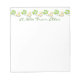 5,5" x 6" weißes, anpassbares Notizblock mit einem Bild eines hübschen grünen Kleeblatts und Goldmünzen. Lesen Sie die gesamte Sammlung des St. Patrick’s Day Notepad unter der Kategorie OFFICE im Abschnitt HOLIDAYS.