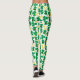 Dieses Paar Leggings bietet ein lustiges und festliches St. Patrick's Day Muster. Der Kobolderhut, die grünen Kleeblatt und die Goldmünzen erscheinen auf weißem Hintergrund.