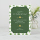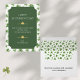 Happy St. Patrick's Day Card mit watecolor Kleeblatt-Design. Der Hintergrund ist ein dunkelgrünes Rechteck, das von einem weißen Rahmen mit Kleeblättern im Aquarellstil umgeben ist. Der Text lautet individuell anpassbar: Happy St. Patrick's Day; Möge das Glück der Iren heute bei Ihnen sein und immer mit einer anpassbaren Unterschrift. Ein kleines goldenes Kleeblatt trennt die Textabschnitte und fügt eine festliche Touch hinzu. Das Gesamtdesign besticht durch eine fröhliche und elegante Atmosphäre am St. Patrick's Day. Solid grüner Hintergrund auf der Rückseite. Kleeblatts Umschläge, die der Einladung entsprechen, separat erhältlich: https://www.zazzle.com/watercolor_shamrock_pattern_st_patricks_day_5x7_envelope-256525548523206081