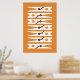 Der große Plakatdruck, der die alltägliche Wäsche aufhellen kann, kann vertikal oder horizontal aufgehängt werden und bietet eine Kollektion von einfach illustrierten Buttonen in Schwarz und Weiß auf einem verbrannten orangen Hintergrund. Personalisieren Sie diese Kunst, um Ihre eigene Farbpalette Anzug, indem Sie den weiteren Link anpassen, um die Hintergrundfarbe zu einer Ihrer Wahl zu ändern.