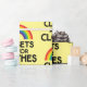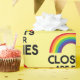 Gay Pride-Umhüllungspapier ist perfekt für eine kommende Feier - mit großem Regenbogen mit "Kleiderschränken" in fett schwarzem Text auf hellgelbem Hintergrund