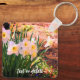 Hübsche weiße Narzissen neben einem Bach mit Blasen. Blumenfotografie von Susan. Sie können diesen Schlüsselring mit jedem Text, den Sie möchten, personalisieren.