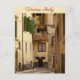 Die gelben Farbtöne einer kleinen Seitenstraße in Verona werden von grünen Holzfenstern hervorgehoben. Diese Postkarte ist vollständig anpassbar.