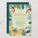 Ein Safari-Thema im Dschungel lädt mit wilden Tieren und Urwaldpflanzen ein. Farben und Text können personalisiert sein.