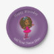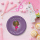 Niedliche Cartoonkunst eines afrikanischen amerikanischen Mädchens in einem rosa Kleid mit einem Diamant Tiara auf einer personalisierten Papierplatte. Fertigen Sie die Text- und Plattenfarbe besonders an, um das Thema Ihres Party und wow Ihre Gäste mit diesem eines netten Einzelteils zu passen.