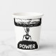 Kleine Ameise auf dem Rasen mit einem Baumstamm. Pappbecher