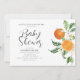Stilvolle Buchstaben kleine Süsse Baby Dusche Einladung und Aquarell grünen Zitrusorangen. Text und Farben können personalisiert sein.