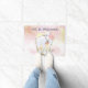 Auf einem pastellrosa und gelben Aquarell, dieses Fresko-Gemälde im Stil einer bezaubernden Babyziege, die eine Blase blasen lässt, sagt HI! & Willkommen (Sie können diesen Text ändern) Goat Lovers Welcome Mat -