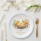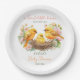 Kleine Birdie Schlüpfen bald Frühling Babydusche Template Teller personalisiert Babydusche Geschirr, Paar niedliche gelbe Kanarienvögel mit einem Schlüpfchen in einem Nest mit Frühling Blüten Baby Dusche Party Papier Teller