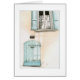 Farbige Bleistiftzeichnung einer kleinen blauen Türe mit einem Fenster darüber, Set in ein altes Gebäude im schönen Dorf Lourmarin, Provence, Frankreich. Eine wunderbare Karte oder ein Geschenk für den Freund oder Familienmitglied, der architektonische Elemente oder alte Gebäude Liebe. Passende Postkarte, Briefmarke, Aufkleber, Poster.