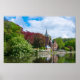 Blick auf ruhige Grünflächen mit Minnewater Lake und kleiner Burg in Brügge während eines sonnigen Frühlingstages in Belgien.