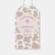 Cowgirl Baby Girl DuschgiftTags. Herzlich willkommen in unserer Babyduschkollektion zum Thema Cowgirl! Dieses Rodeo und das inspirierte, wild-westliche Design besticht durch einen trendigen und spielerischen hellbraunen und weißen Kuhdruck, einen Hut für Cowgirl und Babypinke. Unsere Kollektion umfasst alles, was Sie brauchen, um eine Babydusche zum Thema Western zu werfen, von Einladungen bis hin zu Gastgeschenken. Feiern Sie die Ankunft Ihres kleinen Cowgirl mit unserer lustigen und stilvollen Dekoration. Unsere Kollektion ist perfekt für diejenigen, die das Thema Western, Cowboykultur oder den wilden Westen Liebe haben. Egal ob Sie ein erfahrener Rodeo-Profi sind oder einfach nur die Liebe des rustikalen Charmes, unsere Babydusche-Kollektion wird bestimmt beeindrucken. Jetzt einkaufen und sich für das Party Western-Stil! Bestellen Sie noch heute Ihre und setzen Sie sich für eine wilde und wunderschöne Babydusche ein!