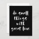 Kleine Dinge mit großartiger Liebe, schwarze Postk Postkarte