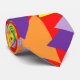 Diese farbenfrohe Krawatte hat einen roten Hintergrund und ist mit kleinen zufällig mehrfarbigen Dreiecken bedeckt.