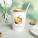 schöne, violette Aquarellblumen und ein bemalter Kürbis. Der Text und andere Features können personalisiert sein.