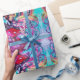 Whimsikale, farbenfrohe, lebendige, verzauberte Märchenwälder im Mondlicht. Akryllische - Aquarellmalerei mit goldenen Glitzern, goldener Folie und leuchtenden Farben.