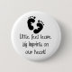Schwarze Babyabdrücke und schwarzer Text, der "kleine Füße liest, verlassen große Impressen auf unserem Herzen!" wird auf T - Shirts, Tassen, mousepads, Taschentaschen, Knöpfe und andere Einzelteile, die für jedermann groß sind gekennzeichnet, das ein Baby erwartet oder hat, wem ein neues Baby hat ankommen lassen!