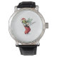 Uhr, Klassische Damenuhr mit schwarzen Lederarmband
