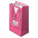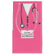 Kreative Geschenktüte zum Thema Medizin für Krankenschwester oder Ärztin mit rosa Krankenhausaufnahmen und Stethoskop-Illustrationen. Bearbeiten Sie den Text, um den Namen der Krankenschwester oder des Arztes hinzuzufügen.