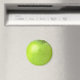 Grüner Apfel auf runden Kühlschrank Magneten.