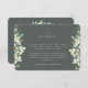 Eine kleine, dunkelgraue Hochzeitszimmerkarte mit Online-Antworten/UAWG, Hochzeitsinformationen und Ihrer Hochzeitswebsite. Mit einem Rand aus handgemalten Snowberries und Eukalyptus vorne und einem Kranz auf der Rückseite der Karte. Alle Texte sind vollständig editierbar und die verstreuten Punkte auf der Vorder- und Rückseite können vor der Bestellung gelöscht werden, wenn Sie es vorziehen. Diese Karte ist mit alternativen botanischen Designs und in verschiedenen Farben und Größen erhältlich. Bitte schauen Sie sich die Sammlung in meinem Geschäft an, um alle Optionen und Koordinationsgegenstände zu sehen.
