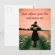 Eine liebenswerte, selbstbewusste kleine Hexe in einem Feld voller Löwenzahn wünscht allen zu ermutigen, "einfach nur den Hut anpassen und sich fortbewegen", wenn das Leben ein wenig zu hart beginnt.