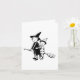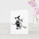 Eine kleine Hexe und Clown auf einem Besen. Dieses Design sieht auf dieser Grußkarte wirklich effektiv aus