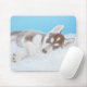 Kleine Husky-Welpe, die auf der Decke spielt Mousepad