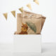 Rustikale Babyduschkollektion, mit sanften Farben und einem Vintagen Aquarellbild eines niedlichen kleinen Hasen mit Sonnenschirm dekoriert, in einem Stil, der dem Peter Rabbit von Beatrix Potter ähnelt.