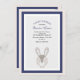 Eine Chiceinladung, ein Kaninchen, das Doppelte gerahmt im Marineblau und Creme kennzeichnend. Gut angepasst für Babyduschen, Geburtstags-Partys, Ostern-Feiern und mehr. (<a href='http://www.freepik.com/free-vector/cute-rabbit-inside-a-black-frame_972434.htm'>Entworfen durch Freepik</a>). <br/><br/>Die Karte ist einfach, mit Ihrer Benennung, Schriftart, Schriftartfarbe und Wahl von sechs Papiersorten besonders anzufertigen<br/><br/>Nicht genau was suchen Sie? Alle unsere Produkte können kundenspezifisch angefertigt werden, um Ihren Bedarf an keiner Extragebühr zu erfüllen<br/><br/>Treten Sie mit uns einfach bei askcottonlamb@gmail.com in Verbindung<br/><br/>Koordinierenprodukte verfügbar: