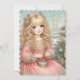 Kleine Katze und Mädchen, frohe Weihnachten Einladung