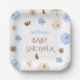 Little Pumpkin Herbst Boho Fall Floral Baby Dusche blauen Teller. Mit schönen Aquarelldesigns auf der Vorderseite und einem charmanten Kürbismuster auf weißem Hintergrund. Einfach für Ihre Veranstaltung anpassbar. Das perfekte Thema für jede böhmische Herbstdusche.