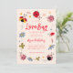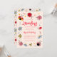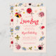 Die Einladungskarte für die niedliche Dusche eines Mädchens zeigt Ladybugs, Blume und Sterne. Im Text steht: "Ein kleiner Liebe-Bug ist auf dem Weg."