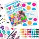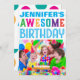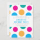 Helle und farbenfrohe Einladungen zu einer phantastischen Geburtstagsparty. Retro-Polka zeigt auf der Rückseite. Für Kinder (oder sehr spielerische Erwachsene)!