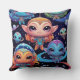 Kleine mehrfarbige Aliens im Weltraum Kissen