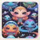 Schützen Sie Ihre Oberflächen stilvoll mit diesen kleinen bunten Außerirdischen im Raum, die für Untersetzer konzipiert sind - ideal für Wohngestaltung, Geschenke und Unterhaltung.