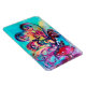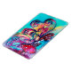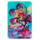 Whimsikale, farbenfrohe, lebendige, verzauberte Märchenwälder im Mondlicht. Akryllische Aquarellmalerei mit goldenen Glitzern, goldener Folie und leuchtenden Farben