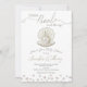 Moderne Handgemalte Muschel mit Perlkern und Perldekor und Kalligraphietext "Eine kleine Perle auf dem Weg" Unter dem Sea Themed Baby Shower Einladung