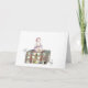 Eine kleine Bisque-Puppe mit rotem Haar und einer silbernen Halskette sitzt, gewartet, auf einem Vintage-Reisekoffer. Die als "Bon Voyage", "Safe Travels" oder "Vermisste You" Karte konzipierte Innenseite ist leer für Ihre eigene Nachricht.