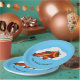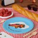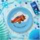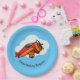 Kleine rote Papierplatte mit anpassbarer Hintergrundfarbe und Text.