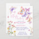 Kleine Schmetterling Wiese Wildblumen Baby Dusche Budget Einladung für ein kleines Mädchen. Blume und Schmetterlinge auf der Weide, rosa Pastellfarben, mädchenhaftes Design.