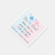 Leider ist beim Bestellvorgang nicht die Größe angegeben, zumindest habe ich es nicht gesehen. Der Name "Duschen"-Servietten ist etwas seltsam :-) Aber man kann aus verschiedenen Designs auswählen und es sieht ganz nett aus. Ich würde mir aber noch viel mehr verschiedene Farben und Muster wünschen! Insgesamt eine nette Idee für ein personalisiertes Accessoire zu allen möglichen Feiern. Der Druck ist OK, er ist nur ganz leicht unscharf.