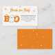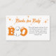 Ein kleines Buch ist zu Halloween Baby Dusche. Set vor einem weißen Hintergrund, nimmt die Phrase "A Little Boo is Almost Due" die zentrale Bühne in whimsikaler, Augen inspiriert Typografie in Orange mit einem flüchtige Blick-a-boo-Geist und sanften Sternen mit Blusenstern, um eine Touch von Charme hinzuzufügen. Dieses Design ist perfekt für die Feier der jungen, sprichwörtlichen Liebe mit einer ganzen Menge süß und verbindet unheimliche Eleganz mit bezauberndem Genuss.