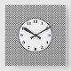 Diese Uhr zeigt kleine schwarze Punkte auf einem weißen Feld. Das Design arbeitet an den runden oder quadratischen Uhren, um Ihrem Zimmer einen Retro-Look zu verleihen.