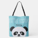 Personalisierte Taschentasche der kleine Schwester Kawaii Panda-Bärn-Gesichts-Tiergeschwister. Hübscher blauer Hintergrund - redigieren Sie, um Farbe zu ändern - mit entzückendem kawaii Pandabärngesicht in Schwarzweiss. Betiteln Sie Staaten KLEINE SCHWESTER - kann zur großen oder mittleren Schwester geändert werden - und Raum, damit Name darunterliegend personifiziert. Spaßschwester-Geschwistergeschenke. www.SamAnnDesigns.com