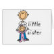 Kleine Schwester-T - Shirts, Bodysuits, lange Hülsen-T-Shirts, Karten, Aufkleber, Magneten und andere Kleider- und Geschenkeinzelteile der kleinen Schwester mit einer kleinen Schwester des Strichmännchens und älterer ein Bruder und ein Kind reden angeordnete Linie Text an, die "kleine Schwester" liest. Erhalten Sie die großer Bruder-zusammenpassenden T - Shirts auch!